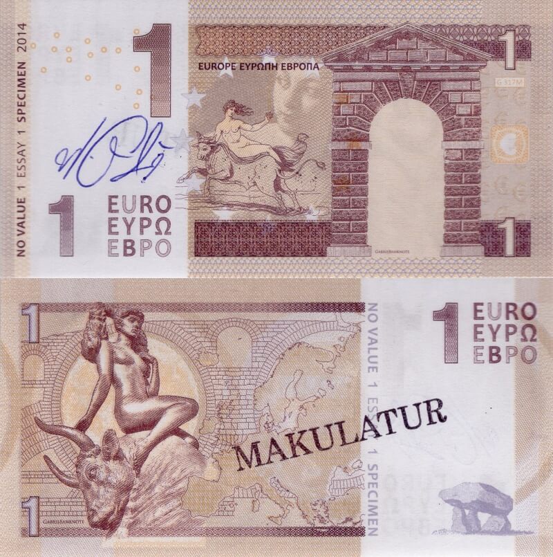 1 euro European Union / verze B Posted in 2014 Rozměry (mm): 117 x 57 Číslo: Bez číslovače MAKULATUR Rozměry (mm): 117 x 57 Číslo: Bez číslovače MAKULATUR s podpisem Mateje Gábriše