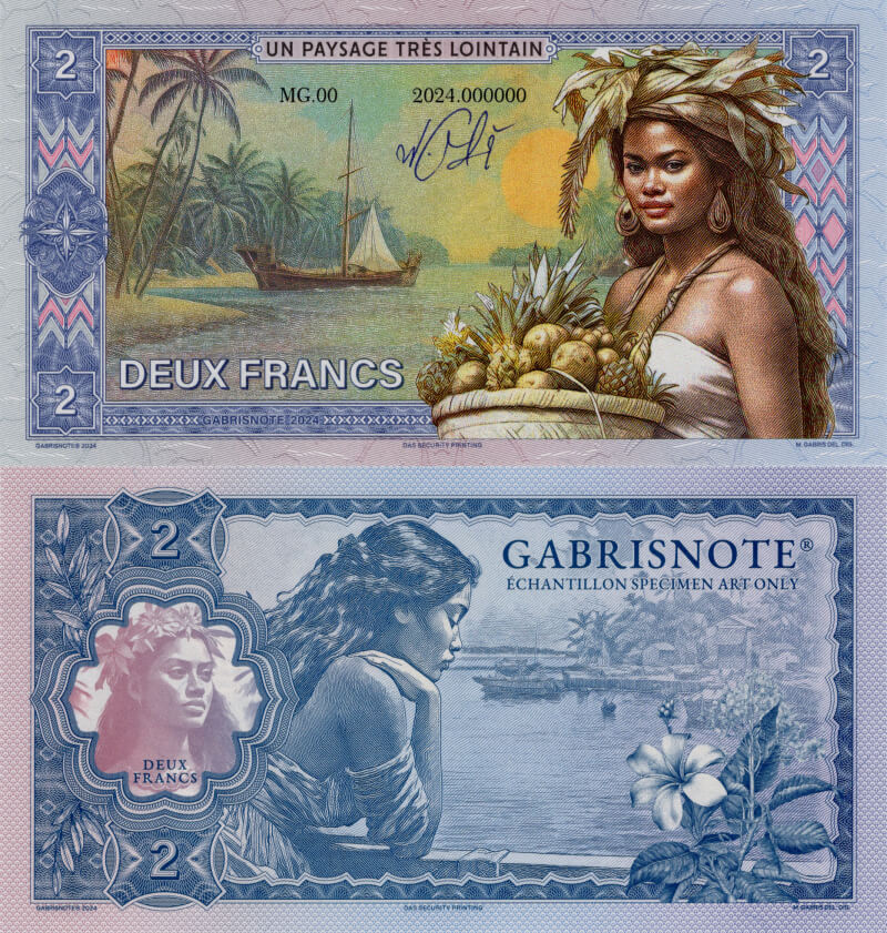 2 francs Tahiti verze A Posted in 2024 Rozměry (mm): 159 x 83 Číslo: Anulát MG.00 2024.000000 Rozměry (mm): 159 x 83 Číslo: Anulát MG.00 2024.000000 s podpisem Mateje Gábriše